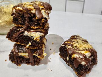 S'MORE PLEASE: topped w toasted marshmallow, chocolate drizzle & graham sprinkles w a graham bottom